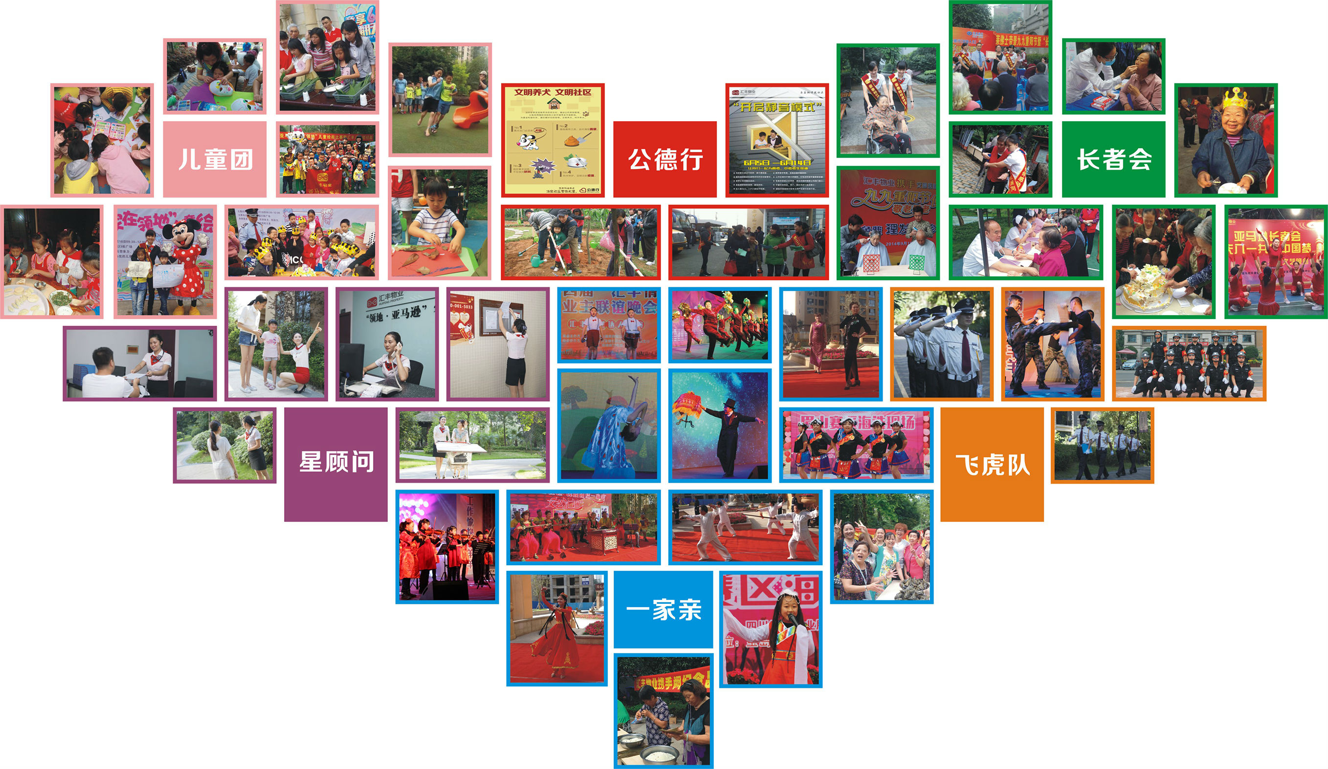 一家亲:倡导融洽、和谐的邻里关系,。搭建业主交流平台,彰显幸福感。